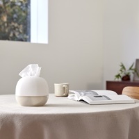 経済的に使える「袋入りティッシュ」専用、インテリアに馴染む上品なケース。残量がほんのりと見えて使いやすい機能性も完備。