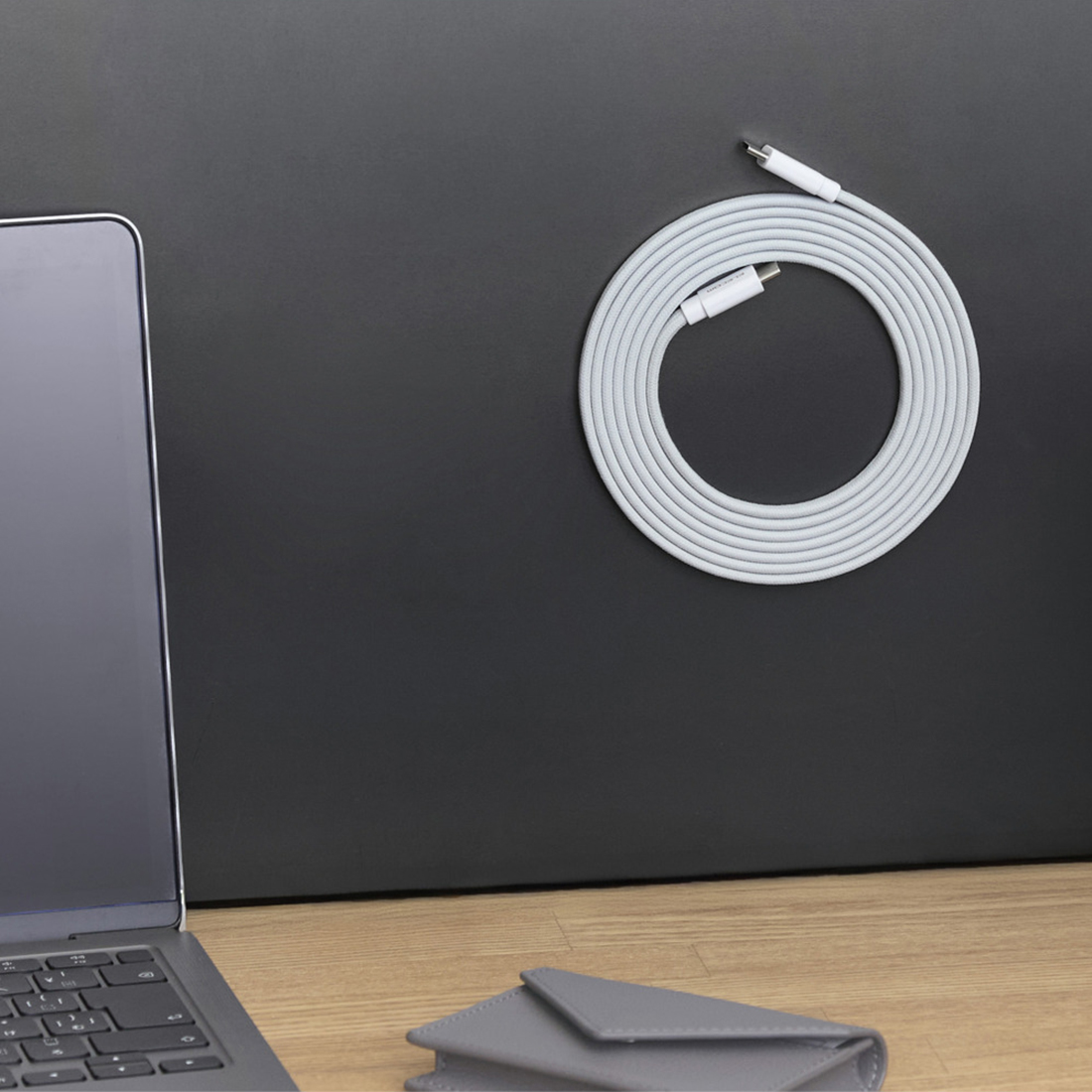 新バージョンでスリムに。磁石で「くるん」とまとまり束ねる。混乱なしで配線・携帯も簡単なハイスペックType-Cケーブル