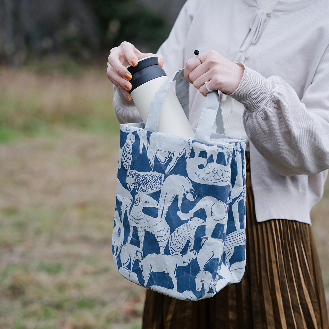 サイズは2種類。「round」はころんと可愛い形で、わずか50グラムと軽量で、お散歩用バッグとしても最適です。
