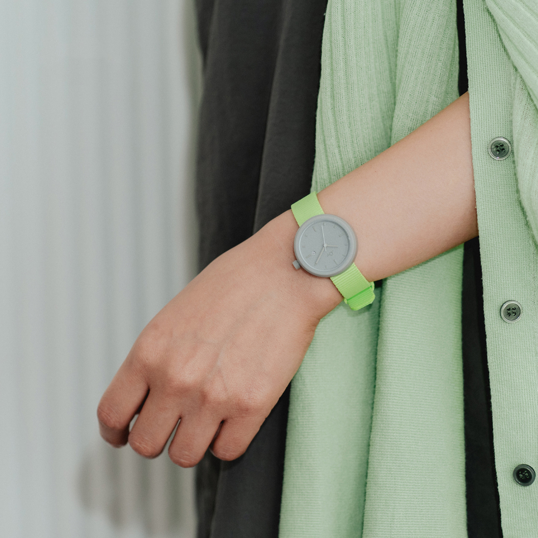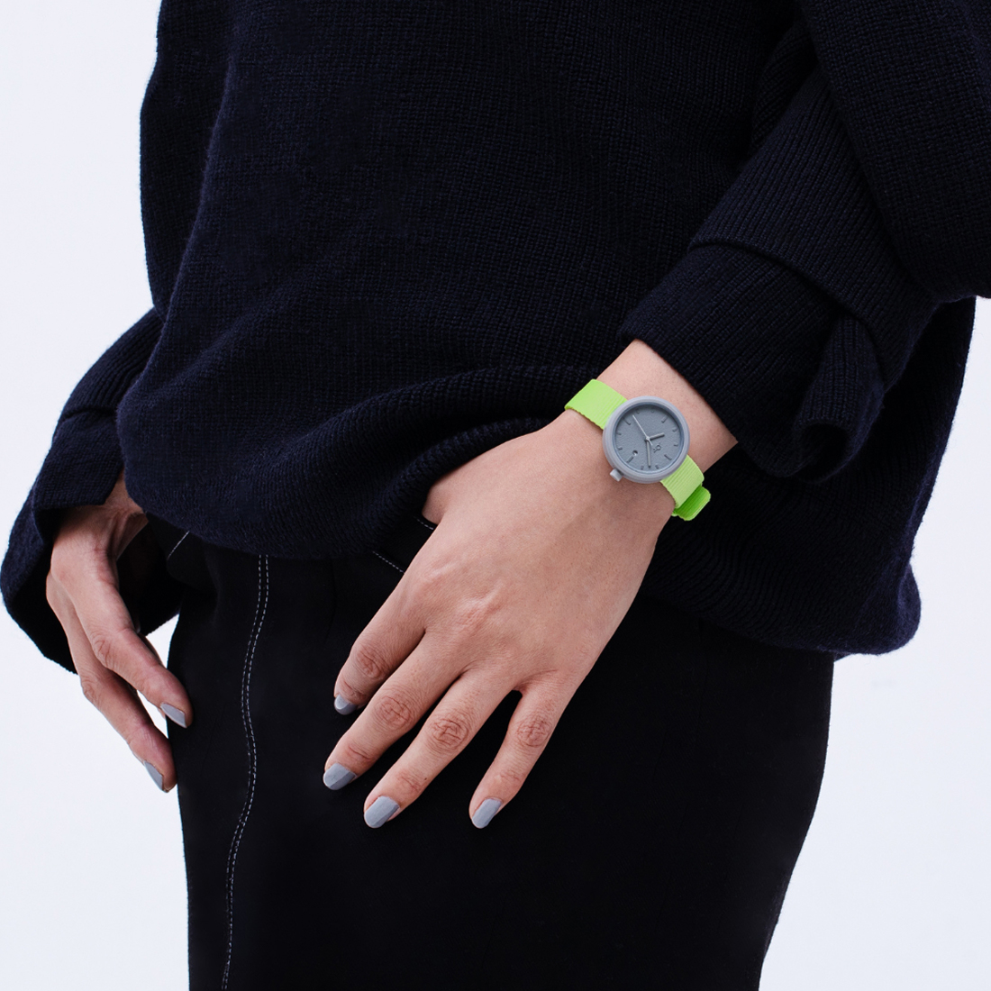 プラスチックの特性を活かし、軽くて視認性が良く、気軽に使える腕時計を目指しました。 子どもから大人まで幅広く使えるよう、サイズを展開し、ベルトもさまざまなカラーを用意しています。 カラフルなベルトにはリサイクル素材を採用し、本体とベルトはコインで簡単に着脱できる構造にしました。 その日の気分やコーディネートに合わせて、自由に付け替えて楽しんでいただけます。