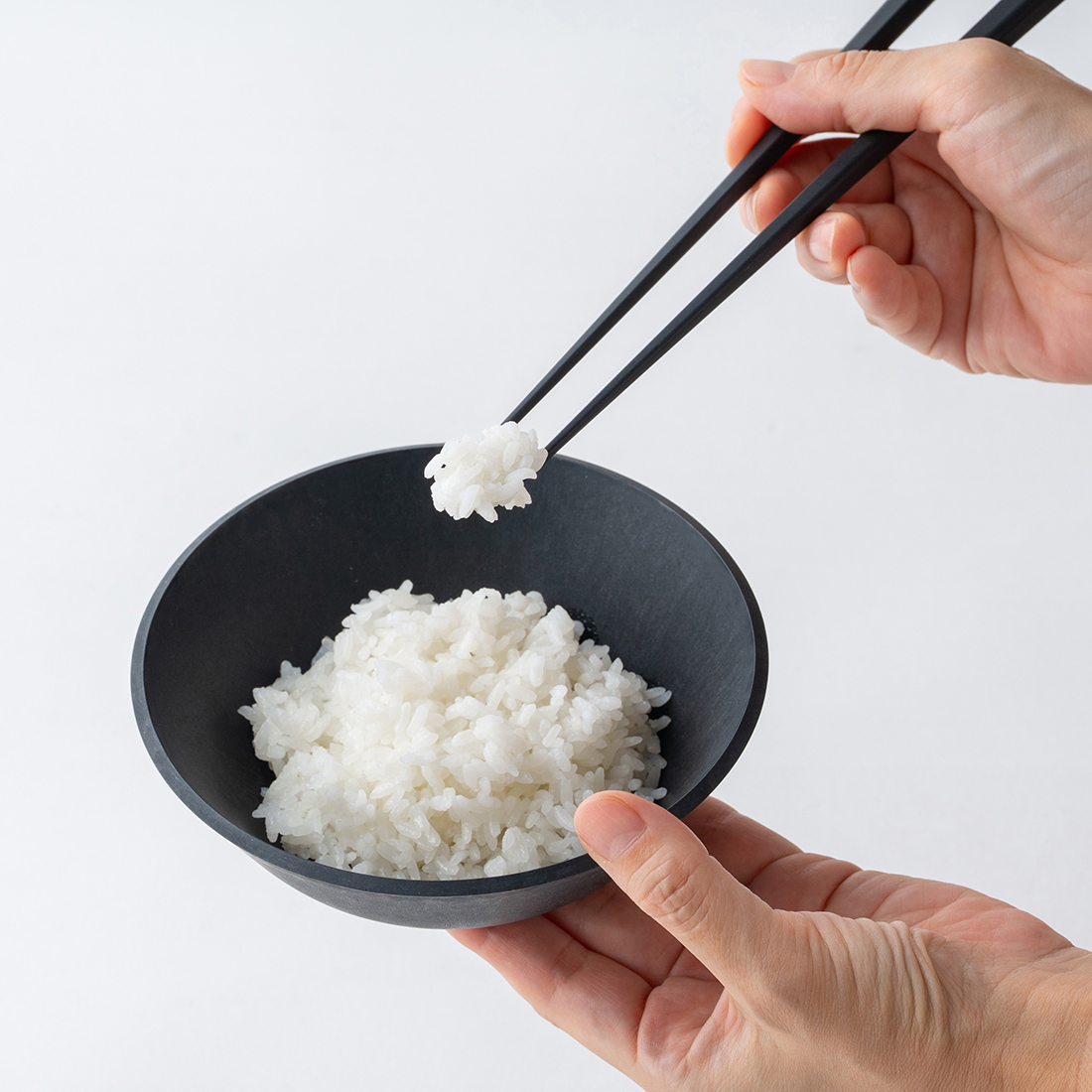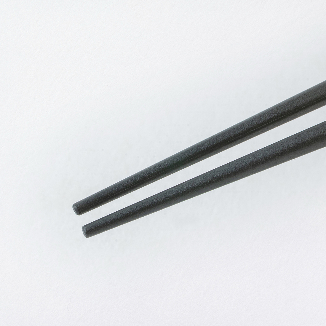 さらに箸全体に微細な凹凸処理を施したことで樹脂製の箸にありがちな滑りやすさにも対応。麺類をいただくときも滑ってしまうことなく掴めて、ラーメンもお蕎麦もうどんも、しっかり食べやすいお箸になりました。