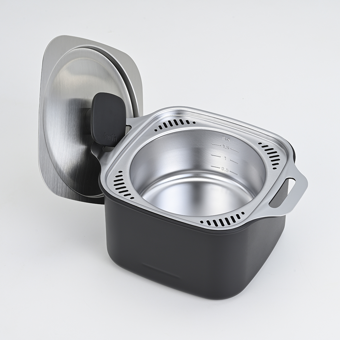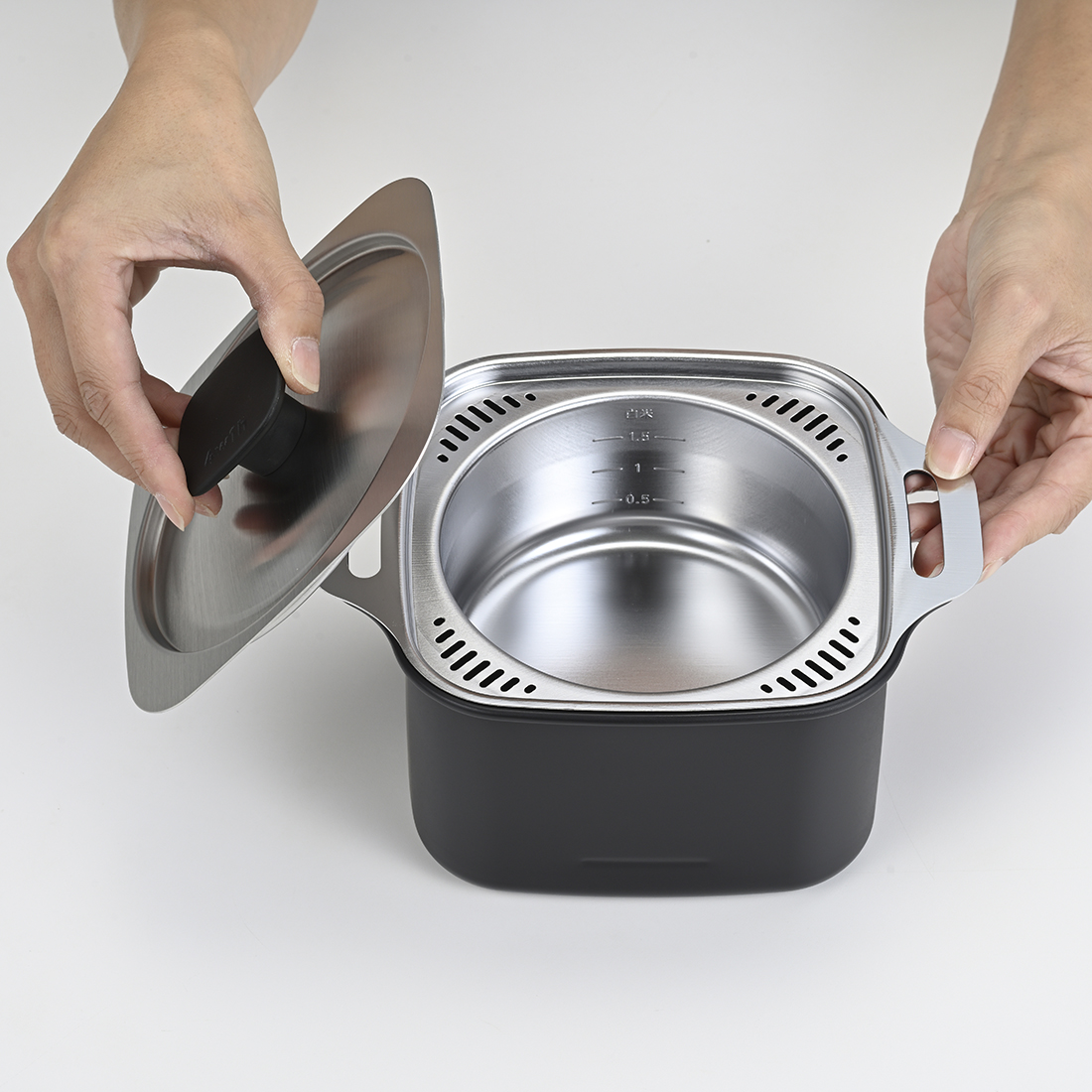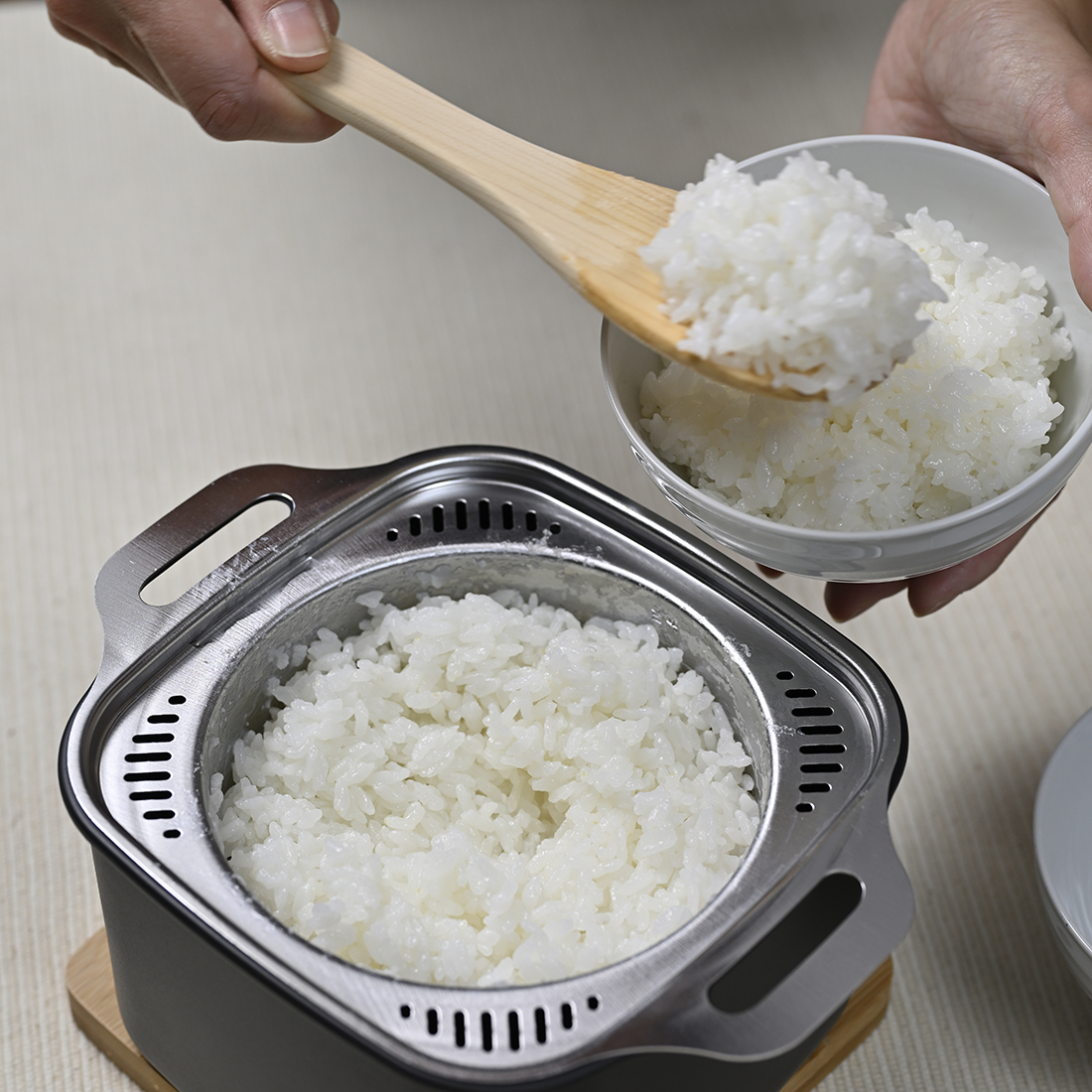 二人ぶんまでのご飯を、手早く美味しく炊き上げる。お米を研ぐ、炊く、片付けるまでを簡単に。新しいステンレス製炊飯鍋が誕生