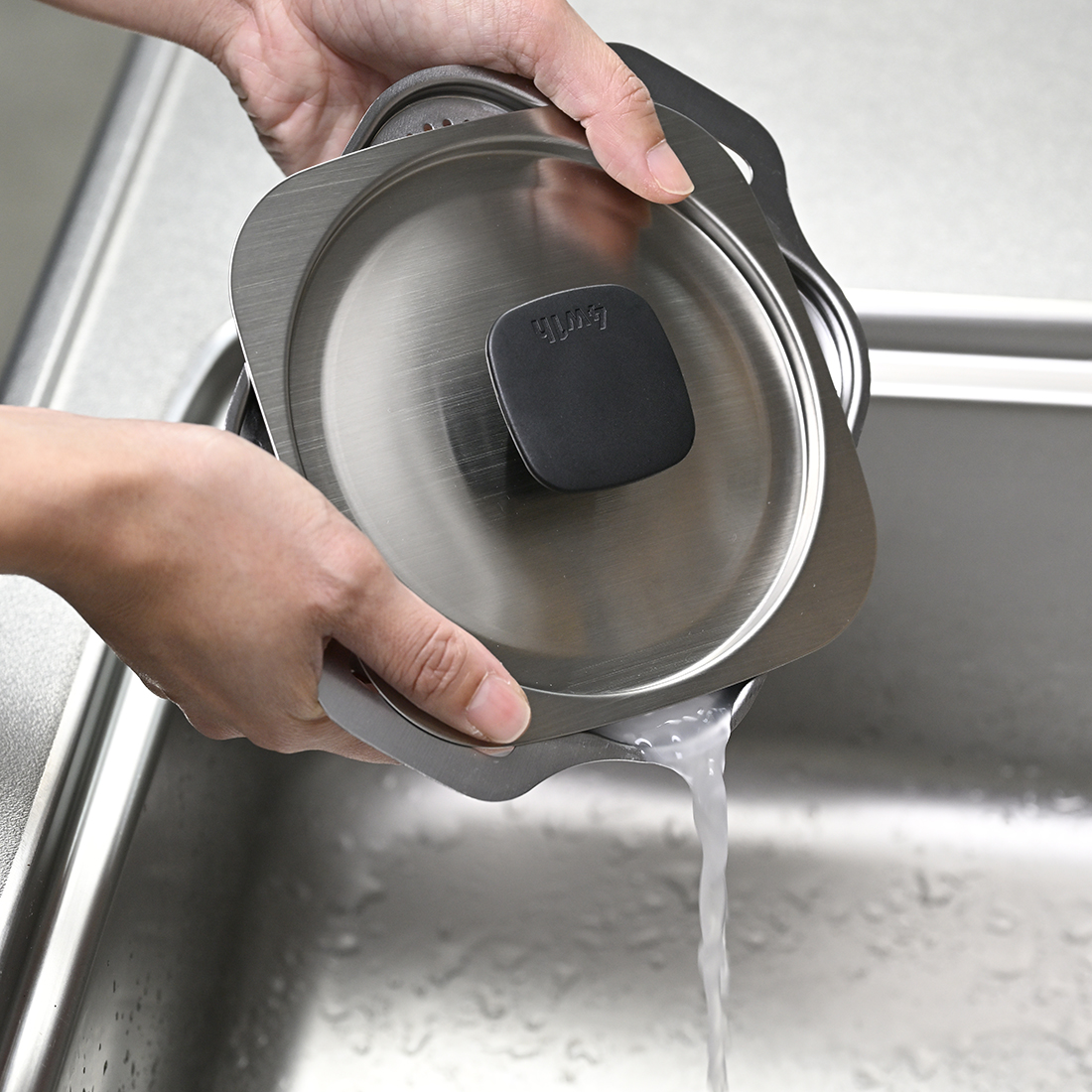 そしてフタと内鍋、内鍋ともにお手入れが簡単なステンレス製。お手入れが難しく、割ったりヒビが入りやすい土鍋とは異なり、取り扱いやお手入れがとても簡単です。