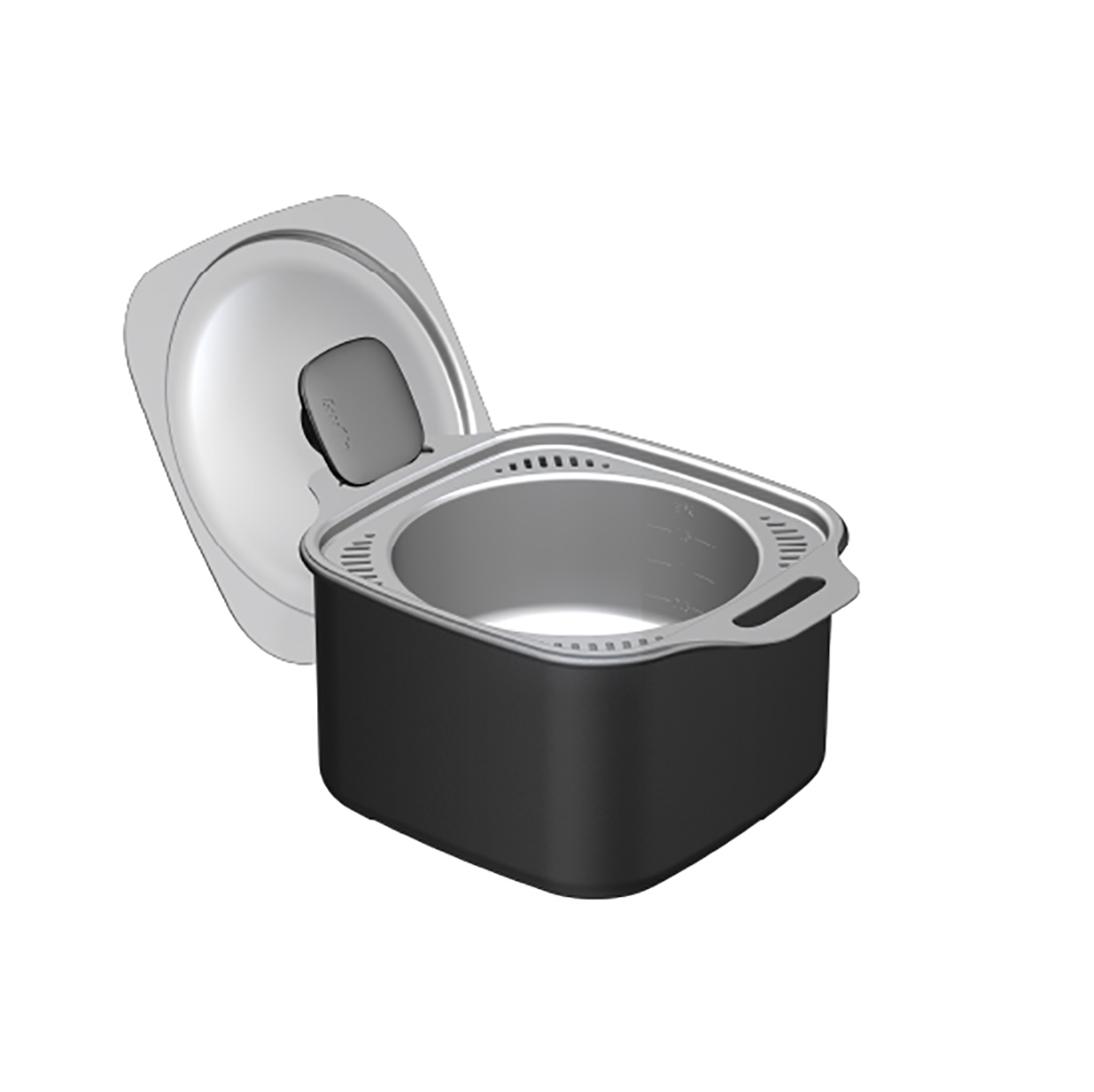 「rice cooker Duo」はこれひとつで、お米を研いで、火加減不要で美味しく炊き上がり、片付けも楽な新しい炊飯ツールです。