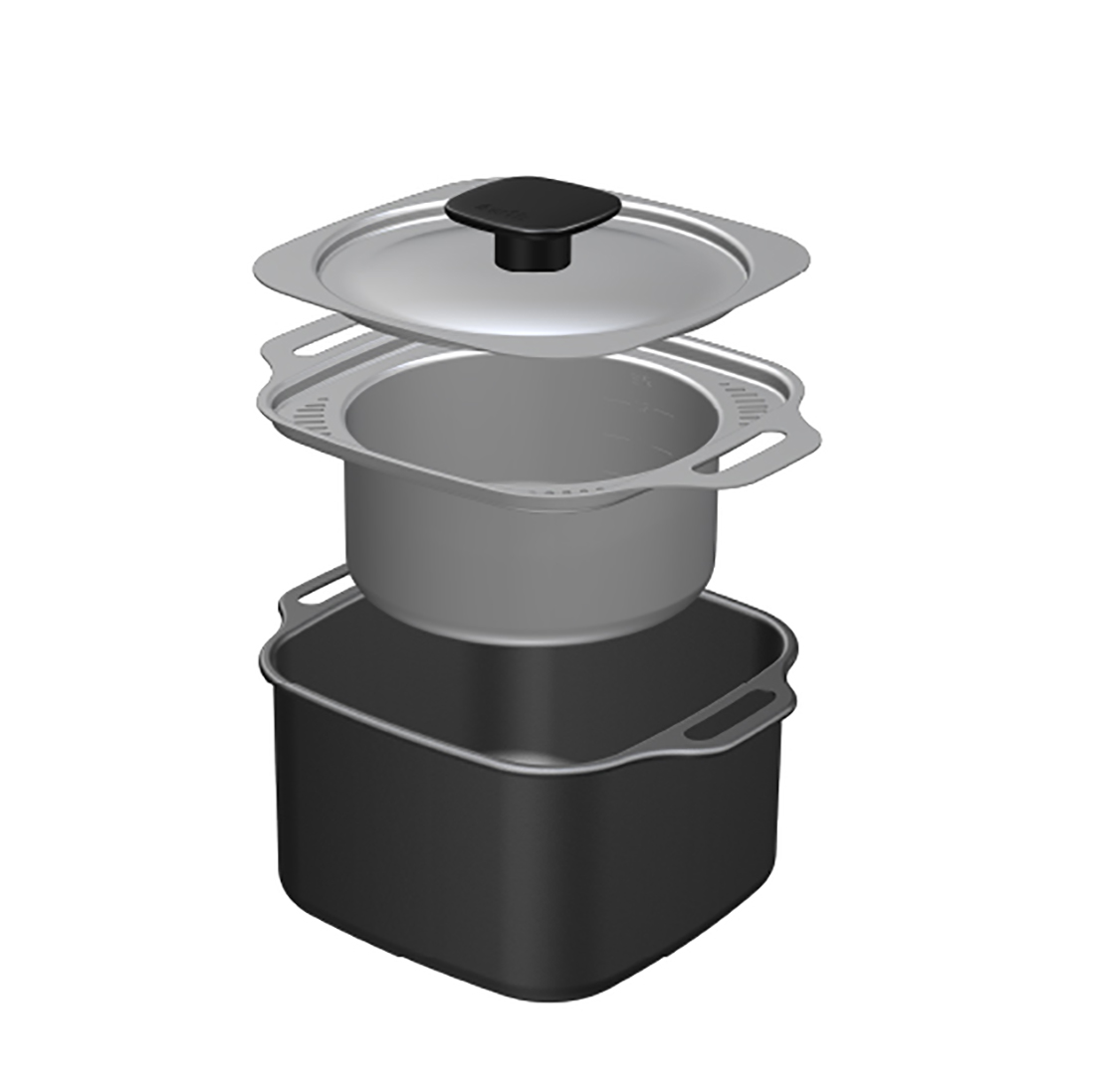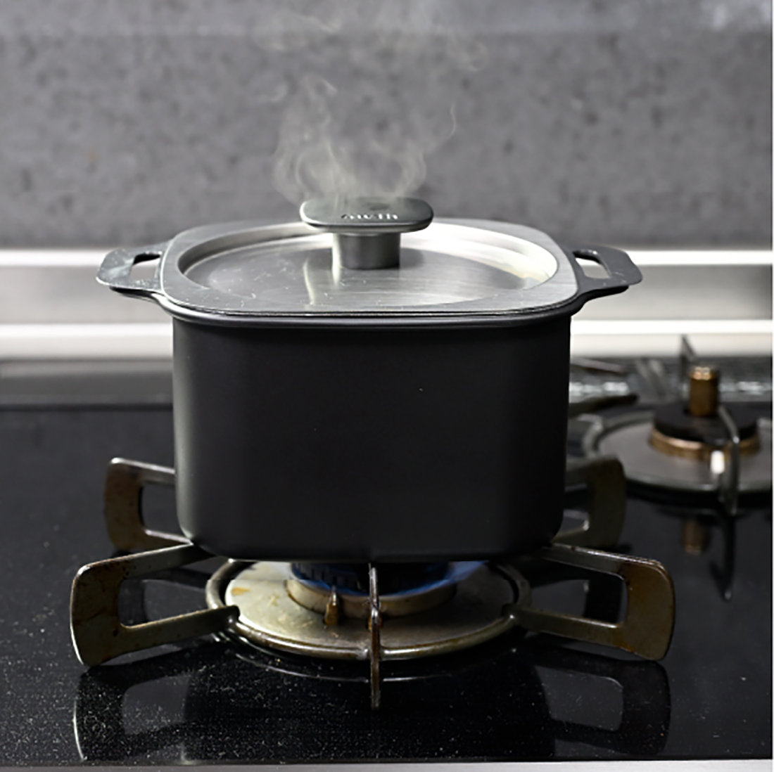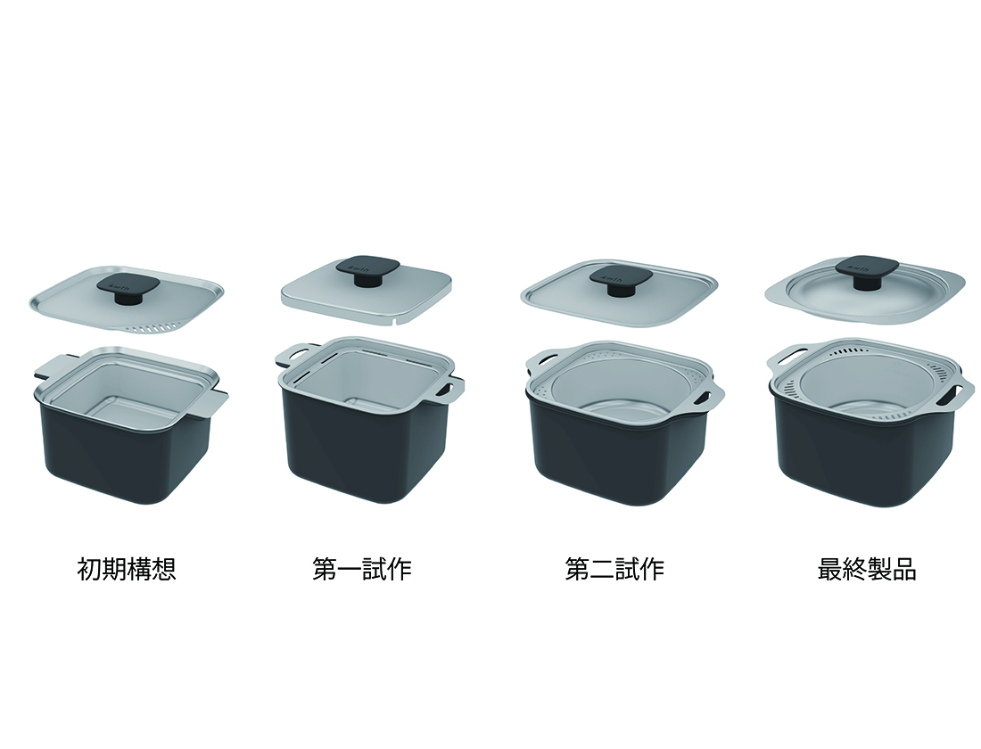 二人ぶんまでのご飯を手早く、美味しく炊き上げる。お米を研ぐから片付けも簡単な、これまでになかった新しい炊飯鍋が完成しました。