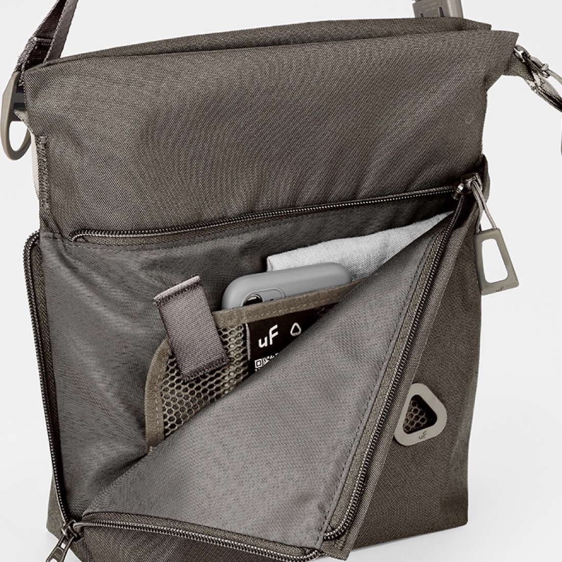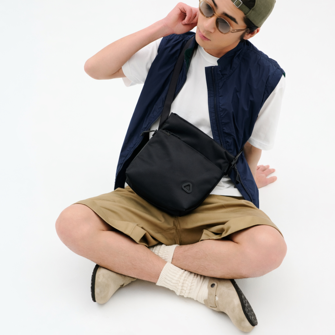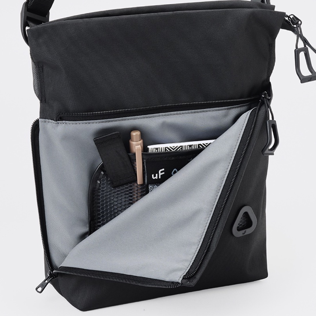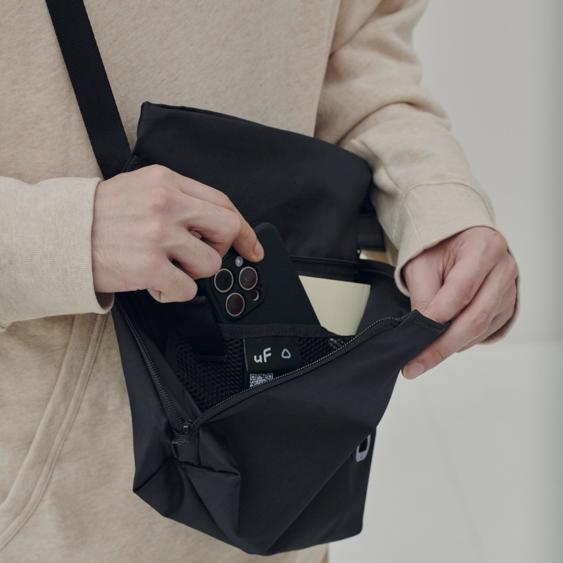スマートフォンなどの必需品だけをコンパクトに収納、ペットボトルや傘の携帯にも対応したGマーク受賞の新しい薄型サコッシュ「uF mobile pouch」9254