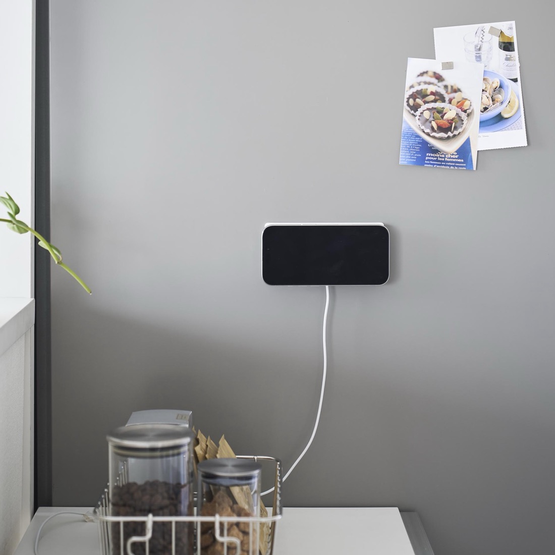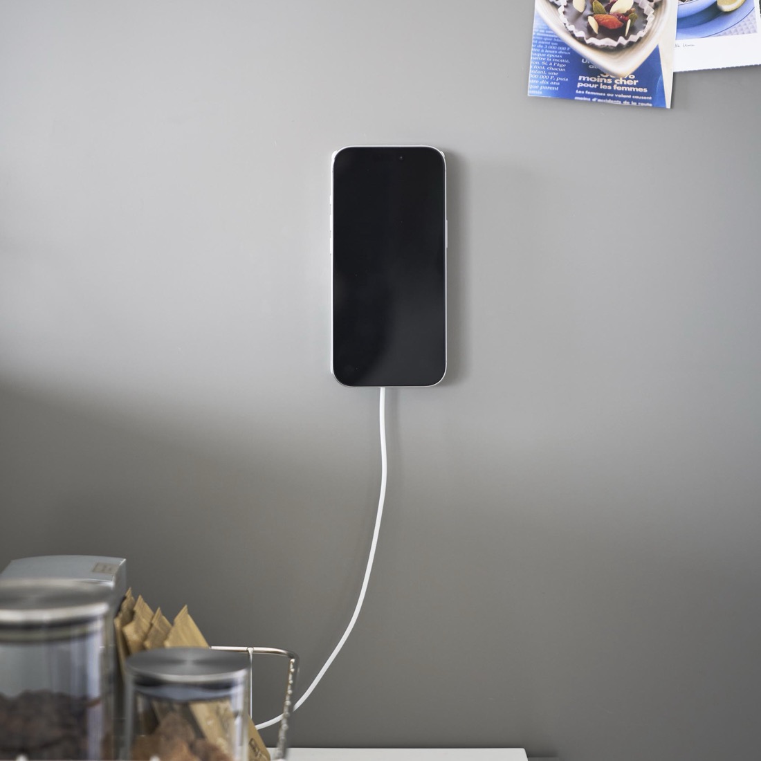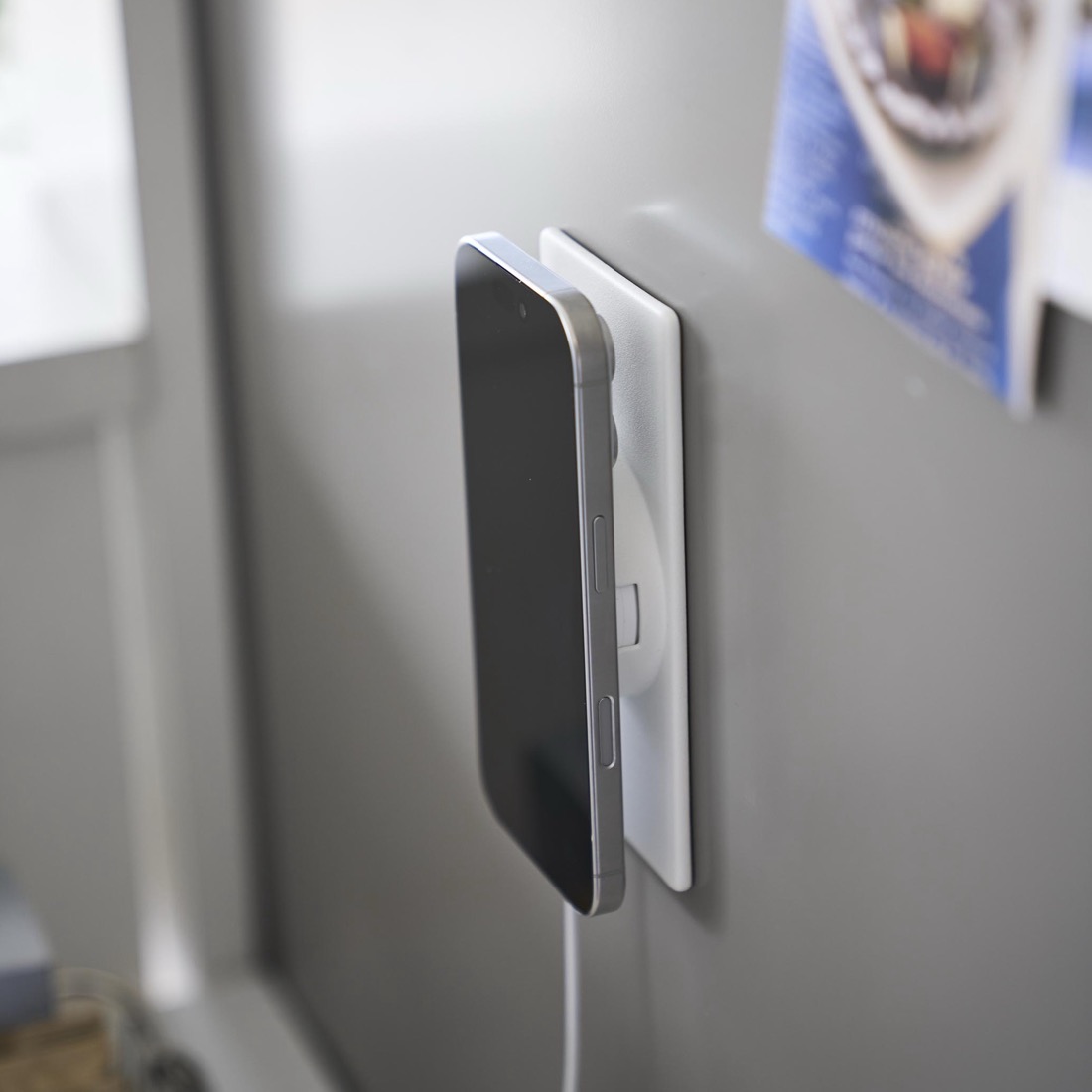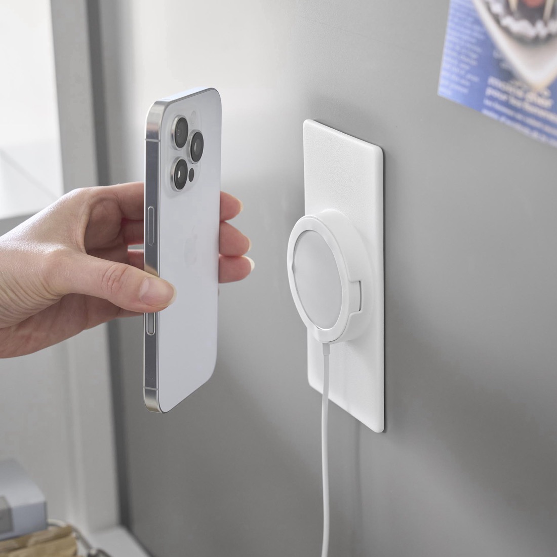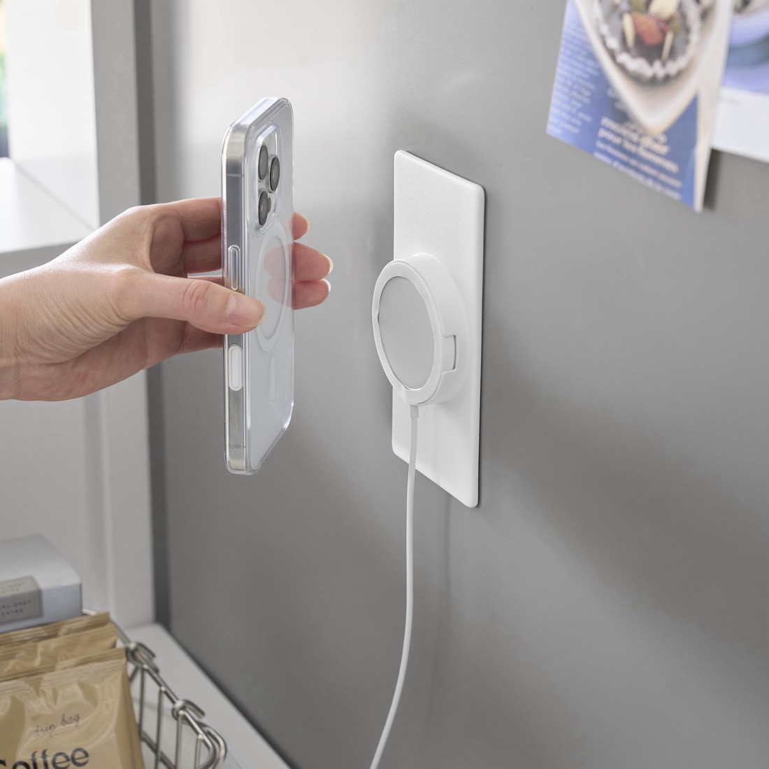 MagSafeで壁面に固定。デスクまわり・キッチン・洗面台・寝室の壁に貼るだけでiPhoneの居場所を作れる薄型パッド「MagSafe magnet pad」9258