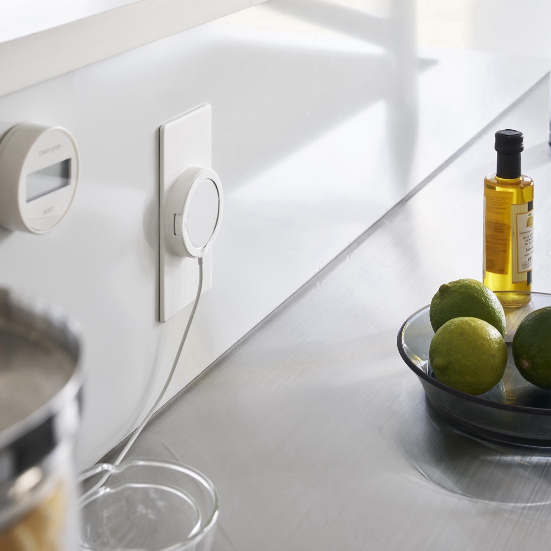 Apple純正のMagSafe充電器を、マグネットで固定。金属の壁面やデスクボード、キッチンや冷蔵庫の側面を使って、iPhoneを固定。iPhoneを充電しながら使用することができる、これまでになかった便利な充電器アダプターです。