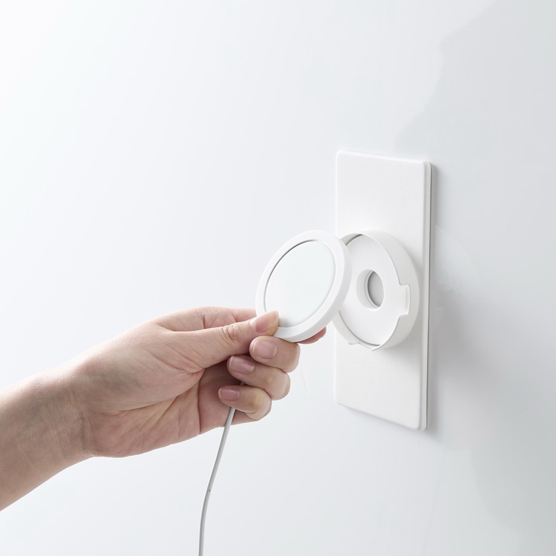 MagSafe充電スタンドとは異なり、デスクを占有してしまうことなく、壁面にスッキリ固定することが可能。17W、25WどちらのApple純正MagSafe充電器もそのままお使いいただけますので、iPhoneとの互換性の心配もありません。