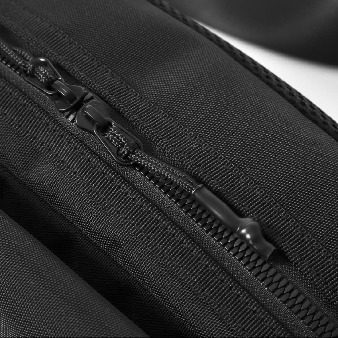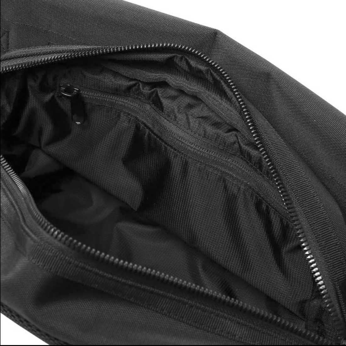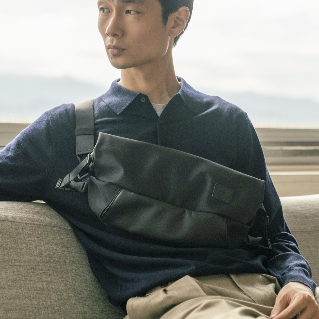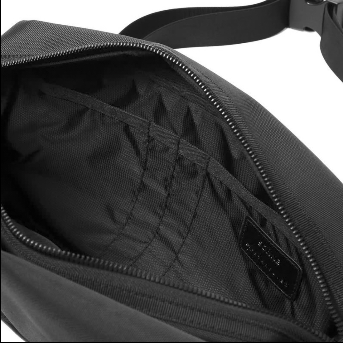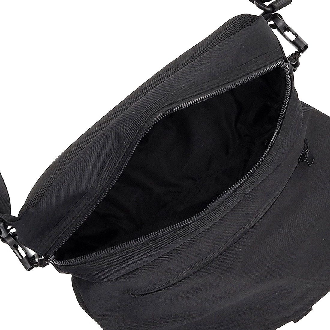 街歩きに仕事に、旅や出張にも。軽量で薄型、オールブラックのボディバッグ。荷物が増えた時には収納部の容量を自由に拡張可能
