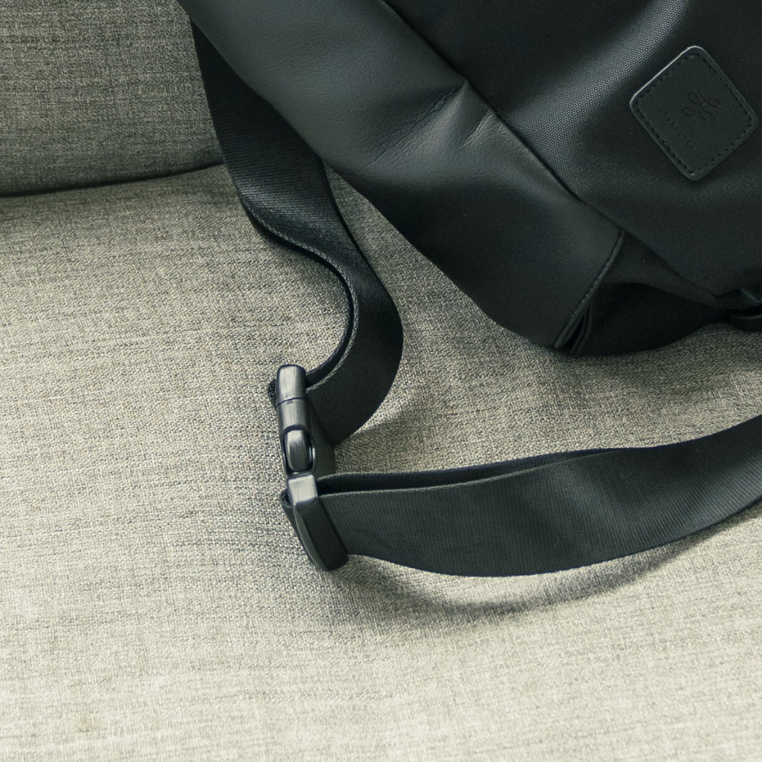 バッグ本体の重量がわずか580グラム。この軽さもこのポリエステル素材と合成皮革を使った素材選びの大きな理由です。
