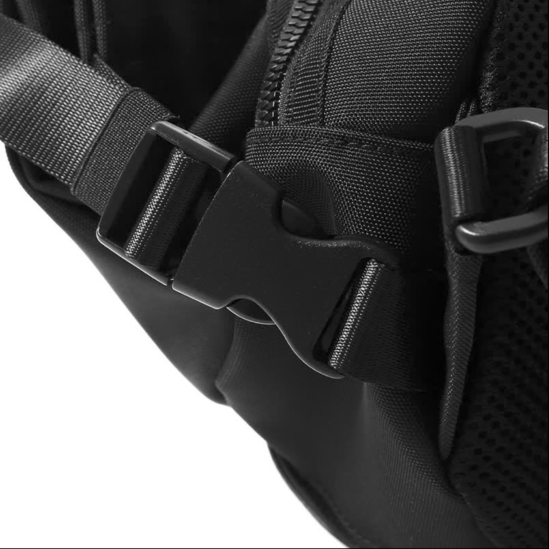 身体と接触する面の素材には前面に、クッション性の高い素材を使用しました。どんなに動きまわっても、そしてTシャツなどの薄着でも擦れが気にならず、さらに通気性の良いメッシュ素材ですから夏場の使用も安心です。