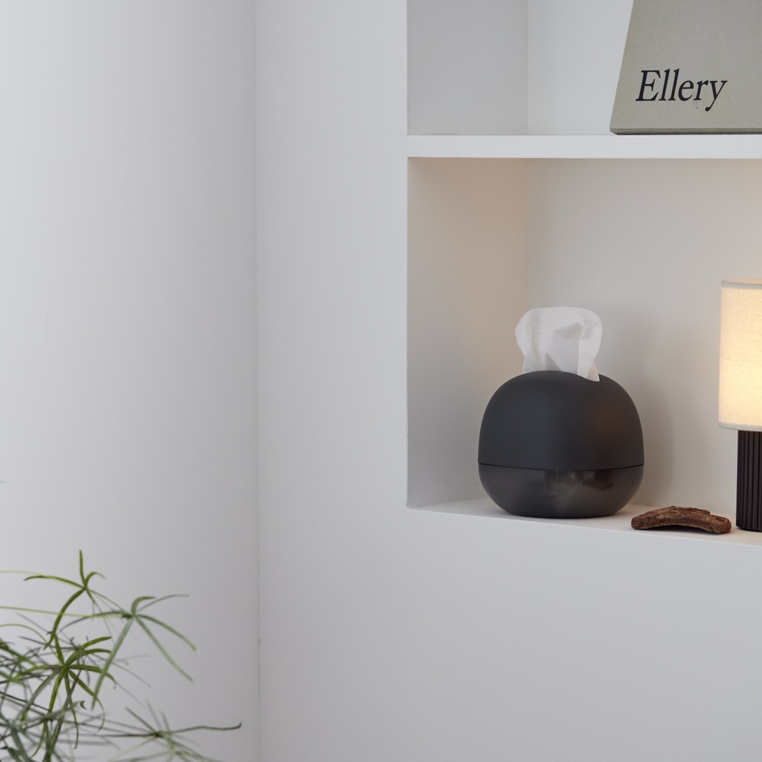 さらに便利なのは、ティッシュの残量をひと目で確かめられること。交換のタイミングをさりげなくチェックができる、美しい半透明の下面シェードのデザインを採用しました。本体には適度な重さを持たせたことで浮き上がらず、ティッシュをスムーズに引き出せ、最後の一枚まで心地よく引き出せます。またティッシュの交換もスムーズに行える構造にしました。